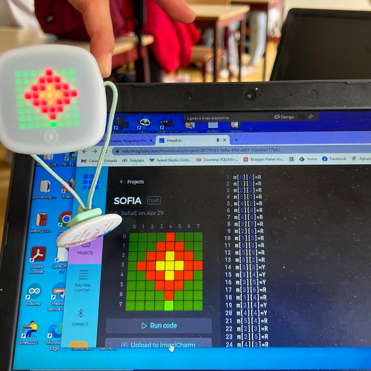 No workshop do CFAERC sobre programação com luz e cor, python e imagiCharms. #ticem3d #aevendadopinheiro #imagicharms #imagilabs #education