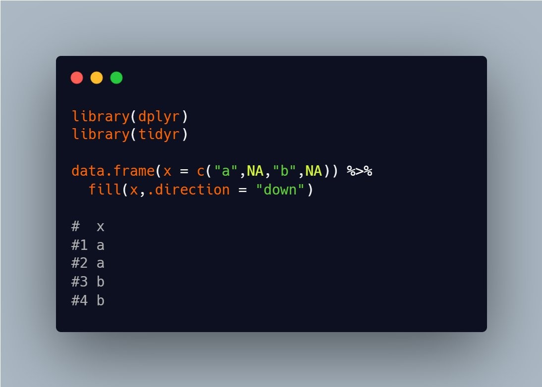 fill() allows us to impute data with other values from the same variable, considering the direction