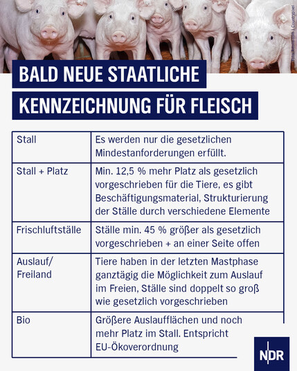 Ab Herbst 2023 gibt es eine neue staatliche Kennzeichnung für Schweinefleisch. Frühestens ab 2025 wird sie verpflichtend.
