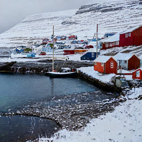 Leiðorð "Snowy Faroe Islands" á Stable Diffusion 2 https://huggingface.co/spaces/stabilityai/stable-diffusion