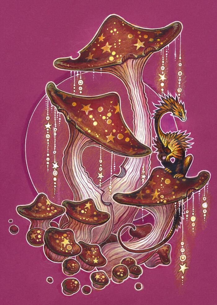 #drachenmagier #fantasy #mushrooms #dragon #traditionalArt #fantasyArt #tinydragon #stars