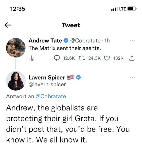 Andrew Tate wurde also Hopps genommen nachdem Greta ihn auf Twitter komplett zerlegt hat.