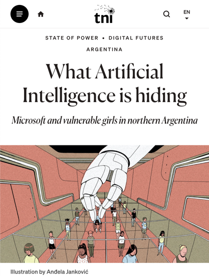 Tobías J. Schleider on tni.org/ #TNI: "In the hands of the state apparatus and large corporations, 'artificial intelligence' can be an effective instrument of #control, #surveillance and domination, and for consolidating the status quo." This became clear when in 2017, the governor of Salta, #Argentina, signed a project with #Microsoft to use #IA to prevent teenage pregnancies: "The project's failure and its violations of #privacy and #humanrights points to the dangers of relying on AI to tackle social and environmental issues" 👉 https://www.tni.org/es/node/18055 #InteligenciaArtificial #IA