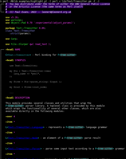 Implementing code-injections in Text::Treesitter + the example highlight script. It can now render embedded POD within #perl source, for example.