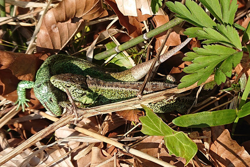 Andere suchen zu #Ostern Eier. Ich hörte beim Chillen am Ufer der #Toess ein Rascheln im Grün der Böschung, schlich mich mit der Handycam an und fand - Osterechsen! #Natur #Winterthur