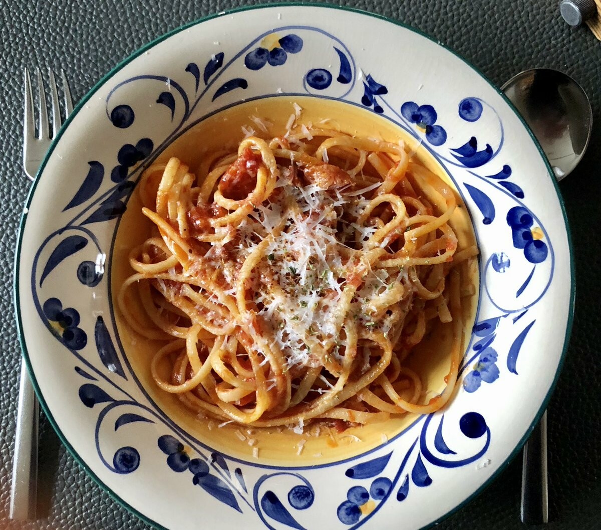 Die #Spaghetti all‘ Amatriciana schmecken besonders gut, wenn man die #Tomatensoße 🍅 etwas länger einkochen lässt. Dann wird sie besonders aromatisch. 👩🍳