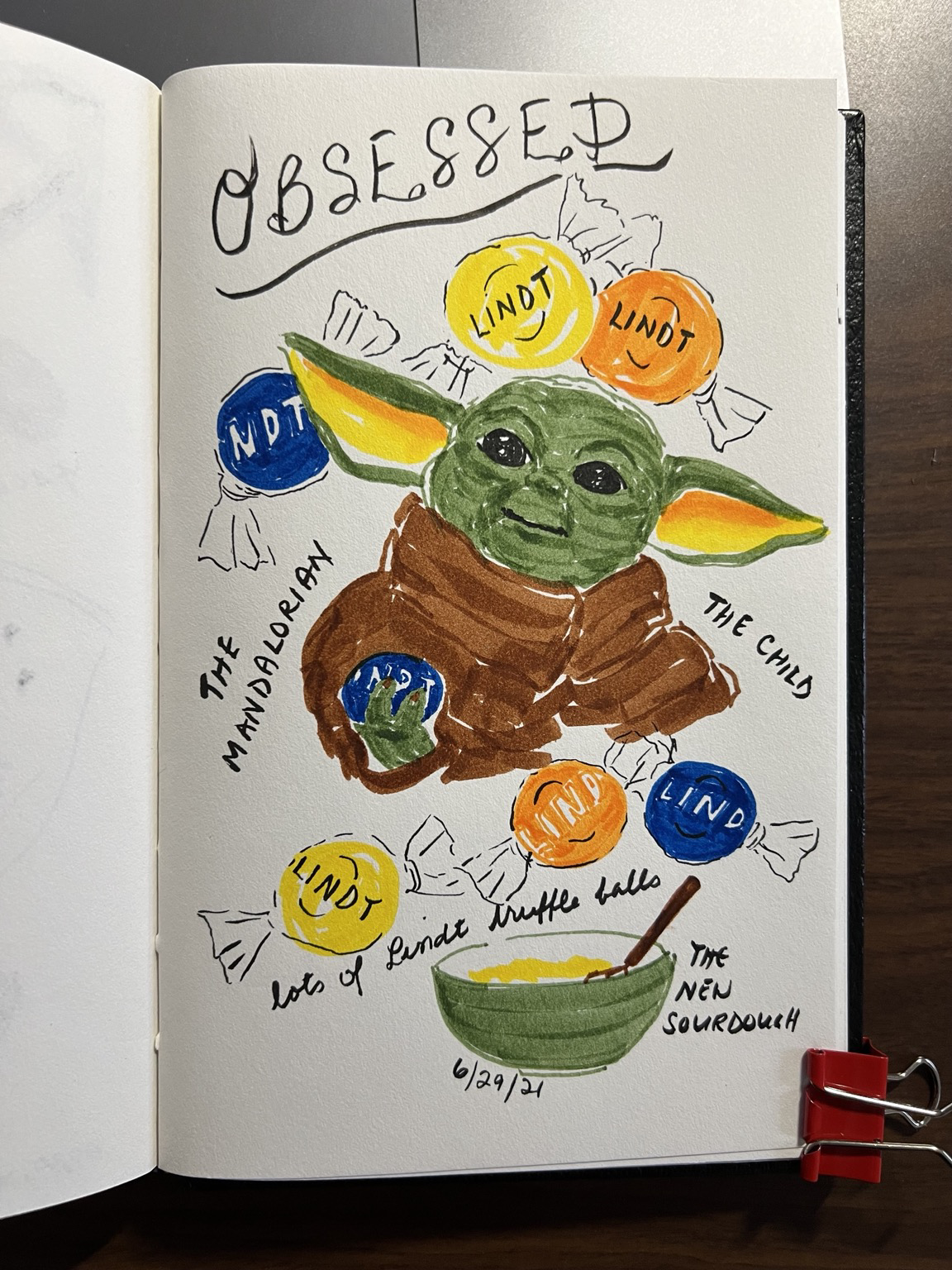 #authorlife #kidlitart #tombowdualbrushpens #drawing #doodle #themandalorian #grogu #starwars