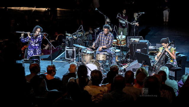 Die Institution des oder der Improviser in Residence beim Moers Festival ist klasse und bringt die jeweiligen #Musiker wirklich näher, weil sie nicht nur beim Festival agieren, sondern das ganze Jahr in unterschiedlichen Konstellationen zu hören sind. 2022 war es die #Cellistin Tomeka Reid. Im Bild recht Isidora Edwards.
