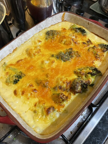 Turned some leftover Béchamel sauce into cauliflower-and-broccoli cheese.