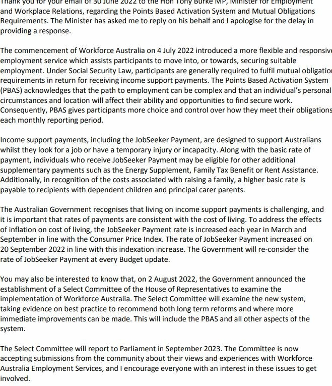 I wish I could reply to emails 4+ months after receiving it. Tony Burke's office regurgitating LNP talking points about indexation of welfare. #TonyBurke #RaiseTheRate #NeoLiberalism #AusPol #ALPDeathMachine