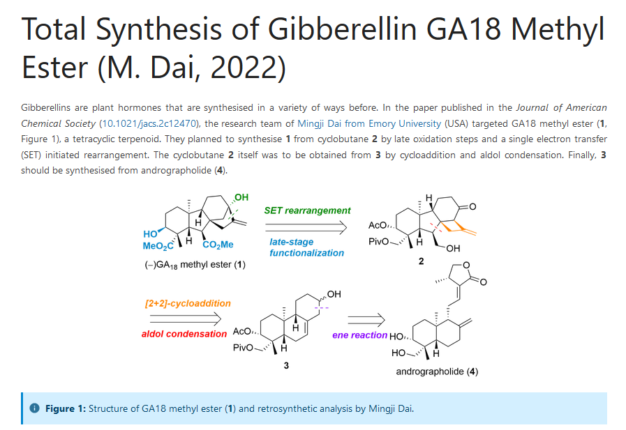 Total synthesis of (−)-GA18 Methyl Ester reported by Mingji Dai from Emory University (Atlanta, #US ) published recently in #JACS featuring a skeletal rearrangement