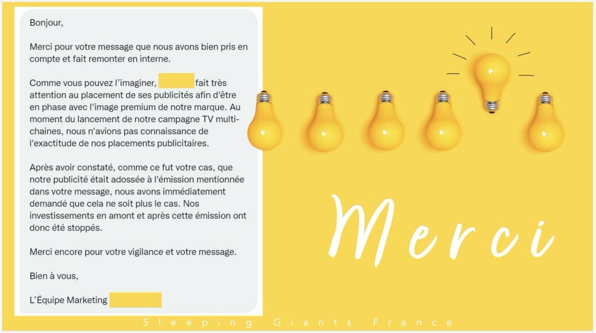 🥳 CONFIRMÉ : Un annonceur de plus se retire du créneau de #TouchePasÀMonPoste sur #C8, parce que cette émission abjecte ne correspond pas à ses valeurs !❤️