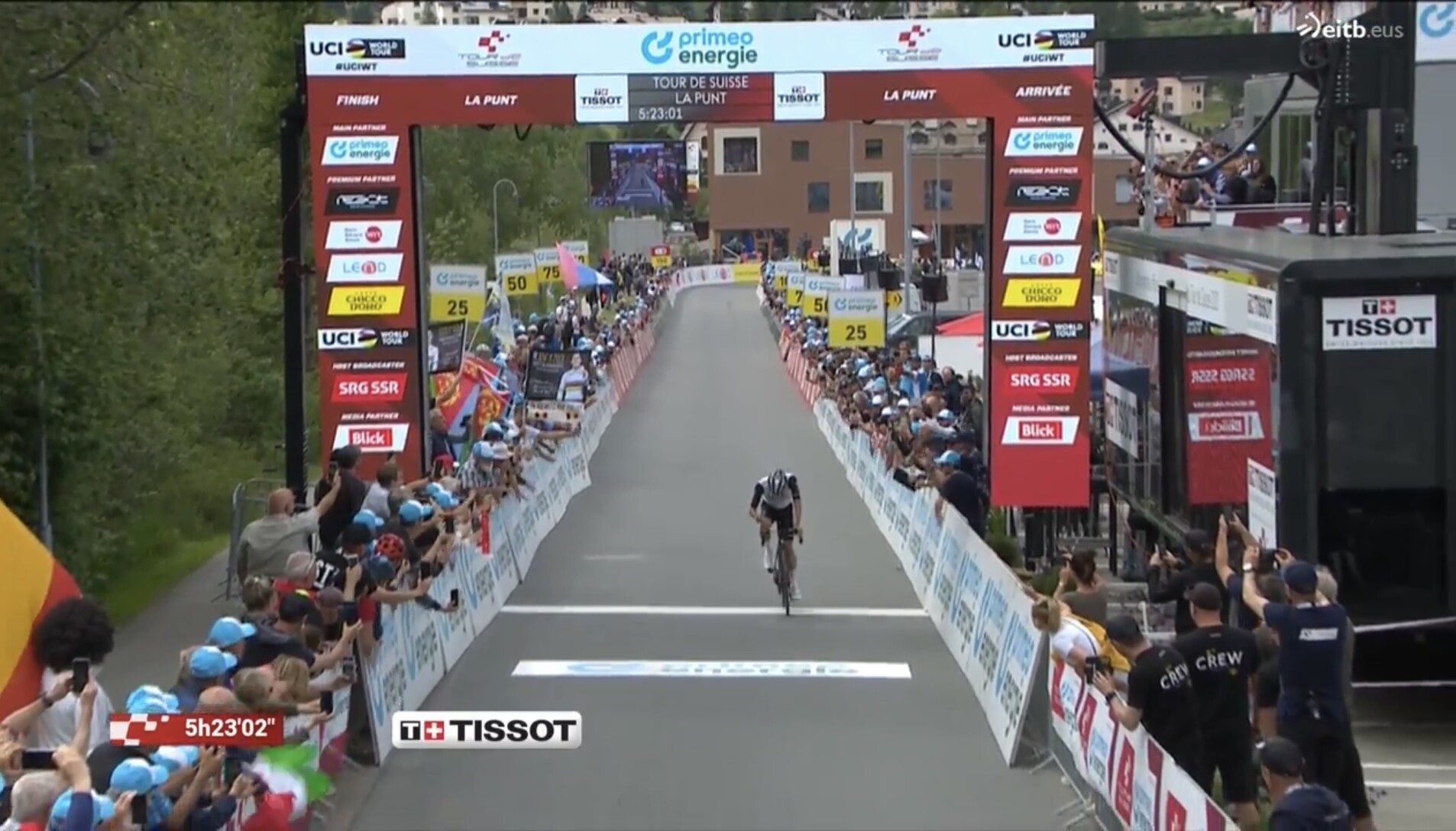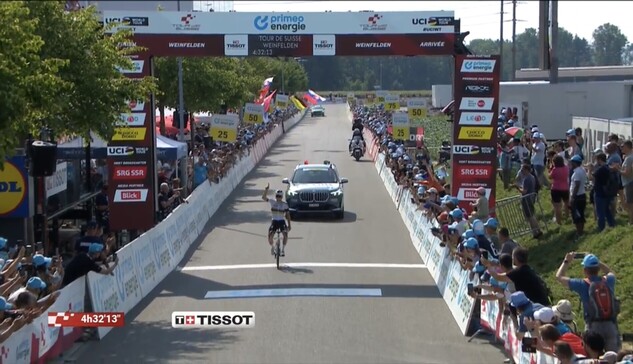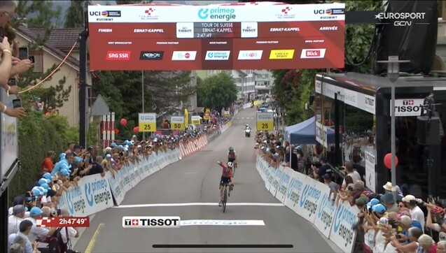 Závěrečný sjezd včerejší etapy v #TourdeSuisse2023 vítěz