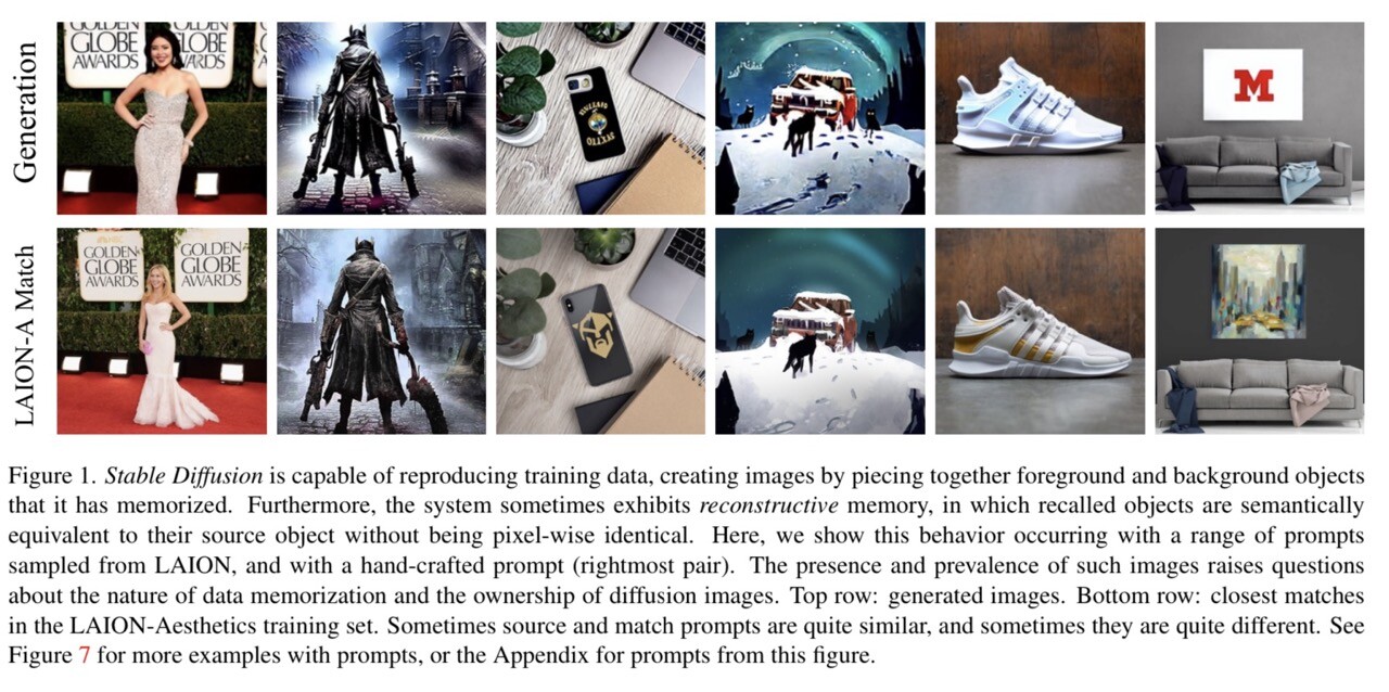 Interesting investigation of how close generated images (Stable D) are to training set images.