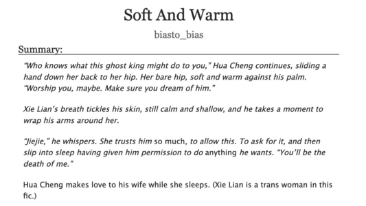 Other: #genderbend #TransCharacter #HetHualian #TransXieLian #OOCHuaCheng #BottomHuaCheng #SubHuaCheng #SubXieLian