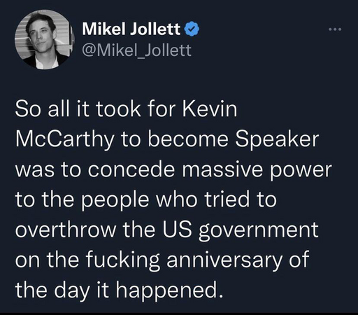 #McCarthy is wooing the wrong people. If he’d promise Dems no committee assignments for the #TreasonCaucus, he’d have 6+ votes, just like that. Instead, he’s negotiating with the same #fascists who want to destroy him because he’s not #trumpy enough for them.