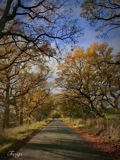 A brief glimpse of sunshine and blue sky #trees #treelane #northumberland