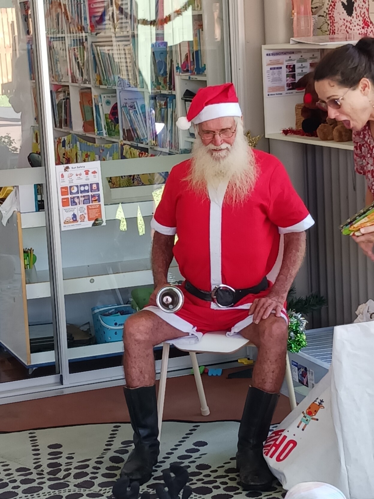 I'm at my boy's kindy party. Santa knows you don't rug up in this heat. #Santa #tropicalQld