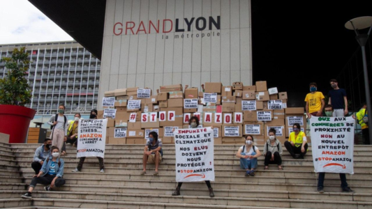 ⏳XR Lyon était *aussi* présent aux côtés de i-boycott et ANV Alternatiba pour dénoncer la construction du méga-entrepôt Amazon à Lyon ! Ni trottis ni centres de tri ✊