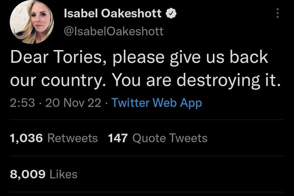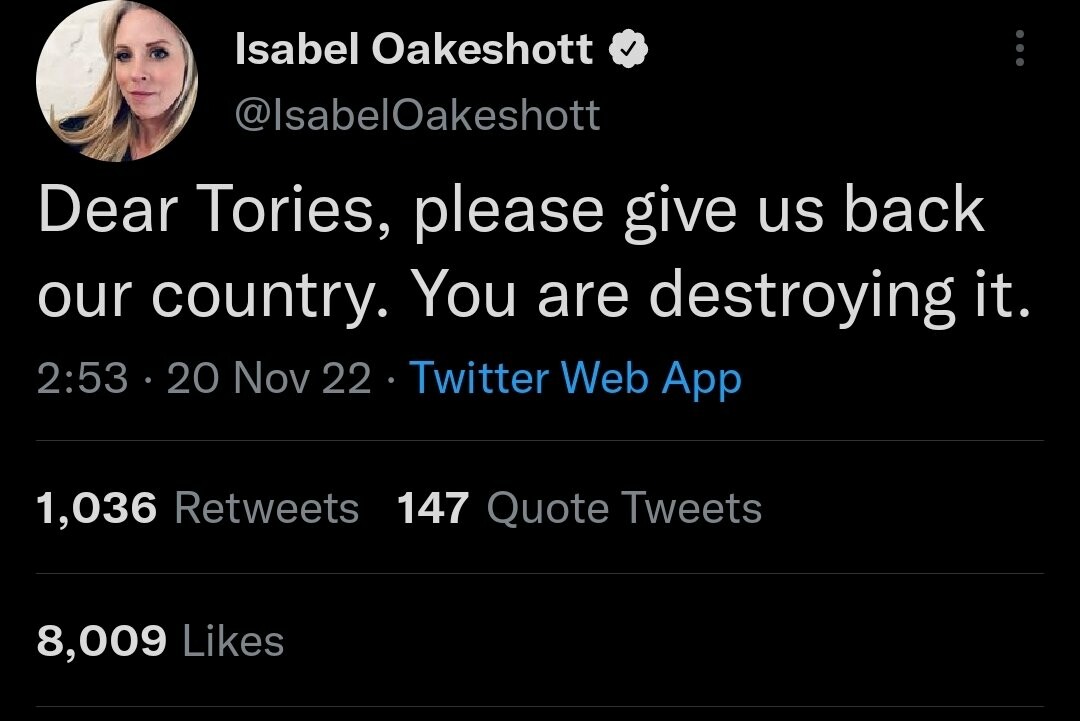 Like the way she's pretending she *isn't* a tory, and *didn't* support their aims, up to and including #trussterfuck