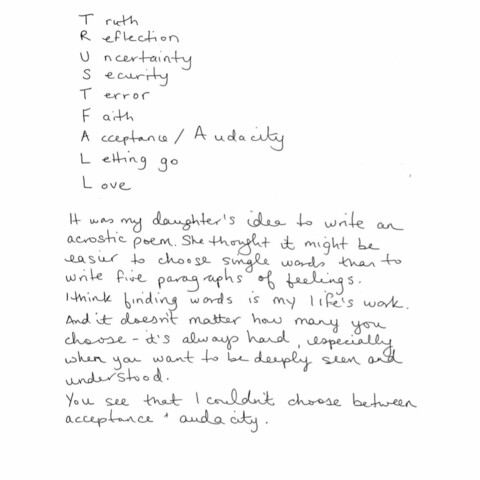 My Mom played it, what I thought was annoyingly, but as it turns out it really spoke to everything we were going through as a family.