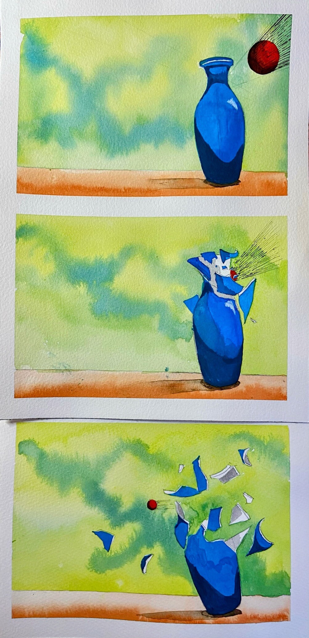 A not-so-still-life triptych 🙂, mostly #watercolor #tryptich #stilllife