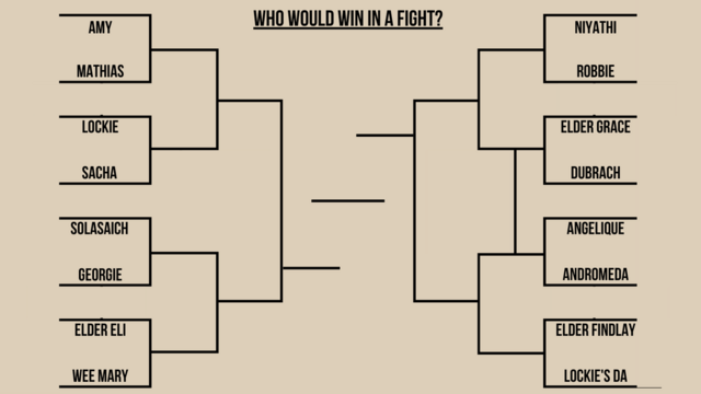 For anyone who uses tumblr: brackets are live! And for anyone who doesn't: the chosen theme is 'who would win in a fight?' Place your bets! #tsosk