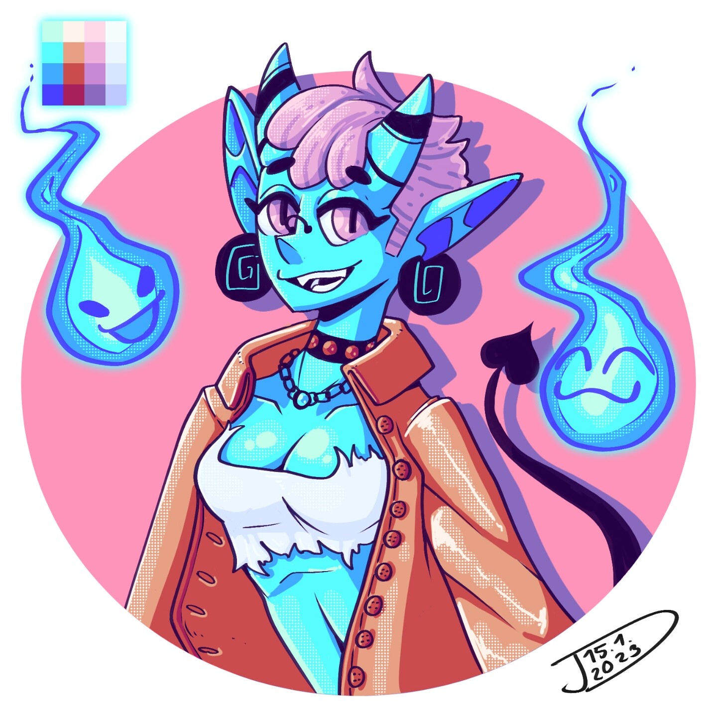 For @/daxrell.art's dtiys over on Instagram. Quite the cute tiefling and her flame companions, how could I not.