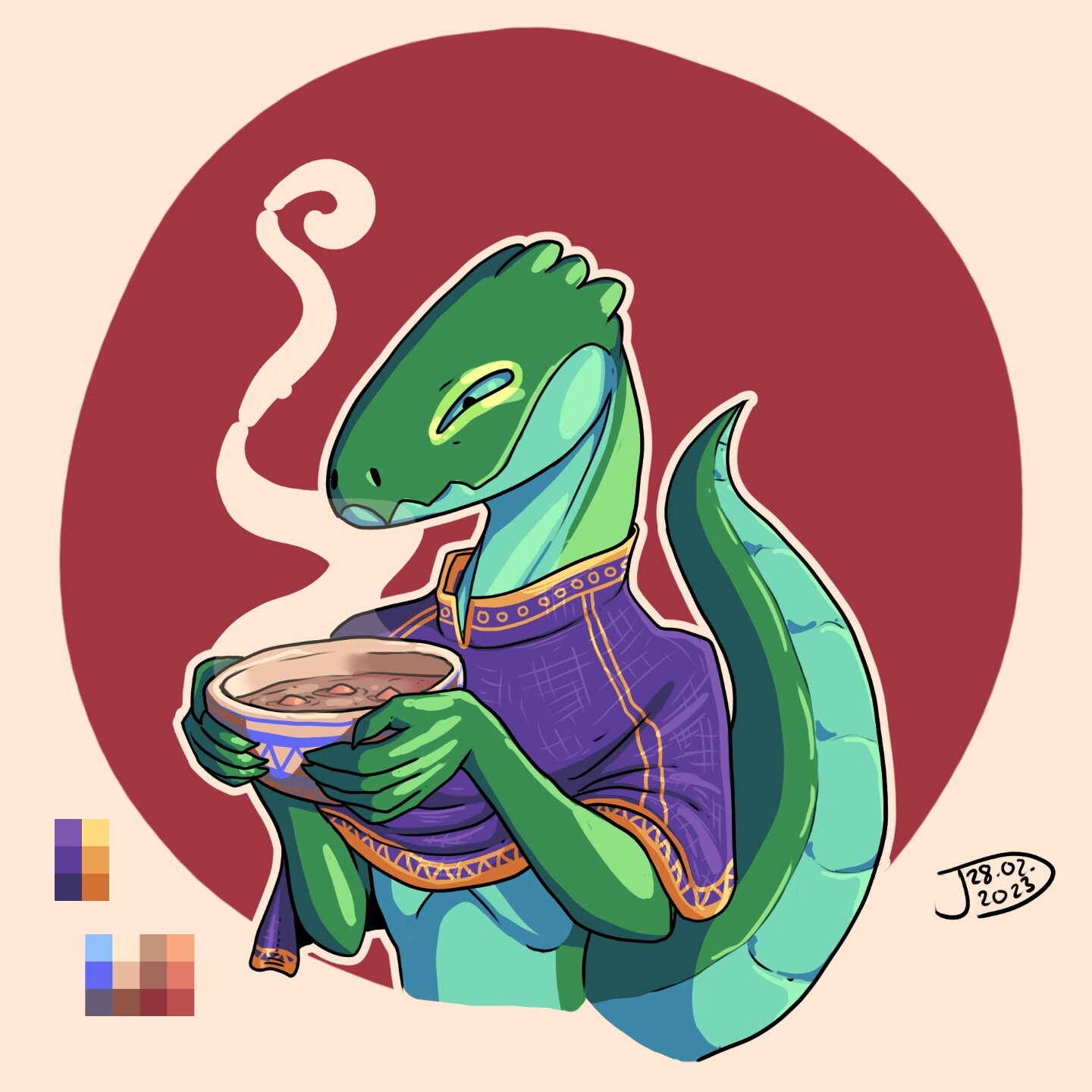 Lizard OC I doodled up some time ago for a setting. No name, just soup, maybe that their name?