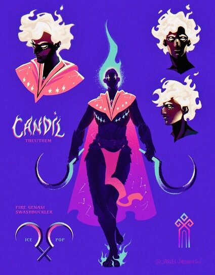 #firegenasi #theythem #queerart #oc #nonbinaryoc #ttrpg #ttrpgcharacter #rogue #dnd5e #swashbuckler #dungeonsanddragons #fediart #MastoArt