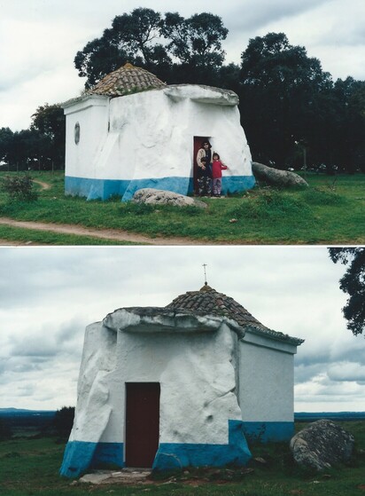 Dolmen-chapel of Saint Brissos, Escoural, Évora, Portugal. Picture taken during a family tour of megalithic Alentejo in 1995. (Perhaps) when a dolmen was so sacred to the local people that it could not be taken down (like so many were) or ignored, the religious authorities during the Ancien Regime "christianized" it.