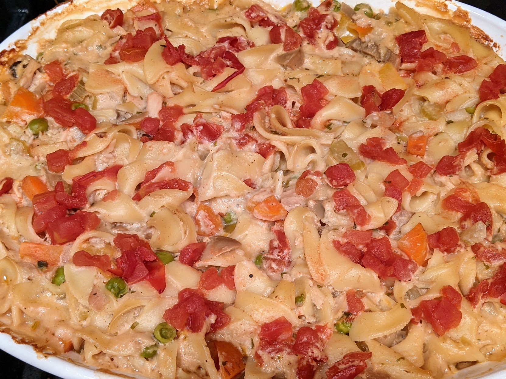 Decided to boomp up our tuna casserole today by adding a lot more vegetables and different than usual. Really like the many varieties of frozen vegetables in packages combining them into mixes for casseroles or stir fry. Here are 2 process photos. Maybe a Voilá photo later. #TunaCasserole #Pasta #Tuna #Vegetables