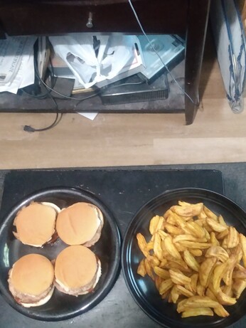 #TurkeyBurgers #Burgers #BatterMixedSeasonedFries #FrenchFries #HomeCooking