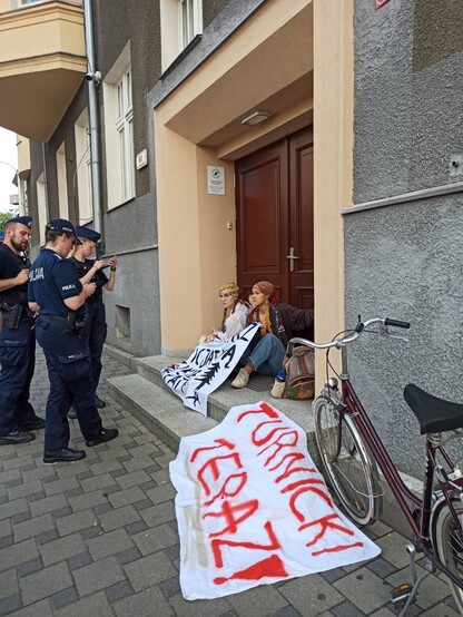 Dziś rano aktywiści #InicjatywaDzikieKarpaty we #wrocław przykleili się do wejść do Regionalnej Dyrekcji Lasów Państwowych, blokując wejście pracownikom i interesariuszom.