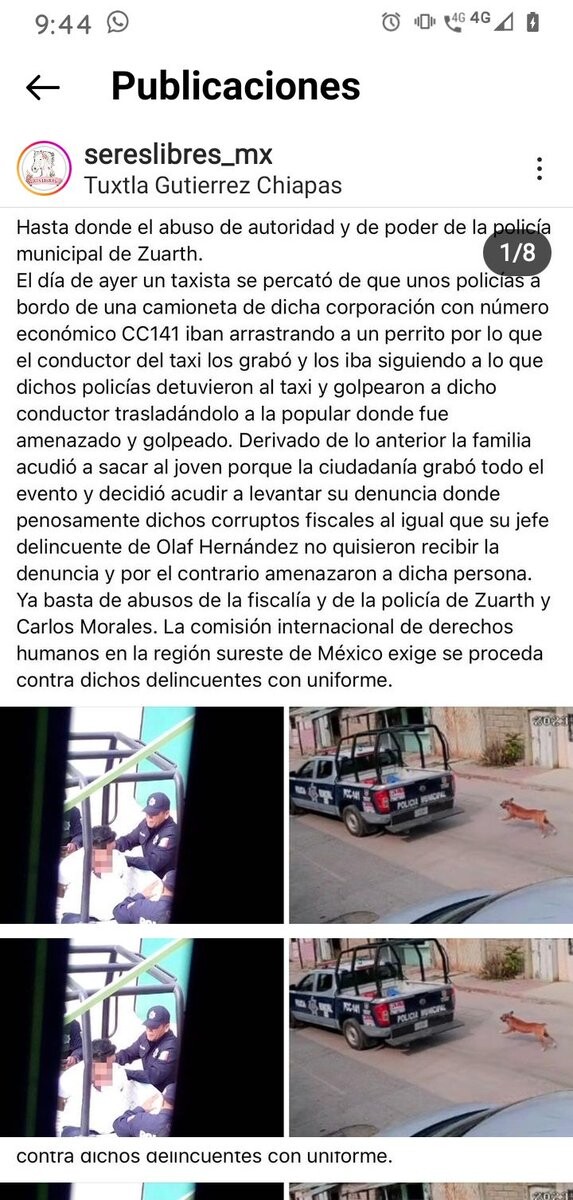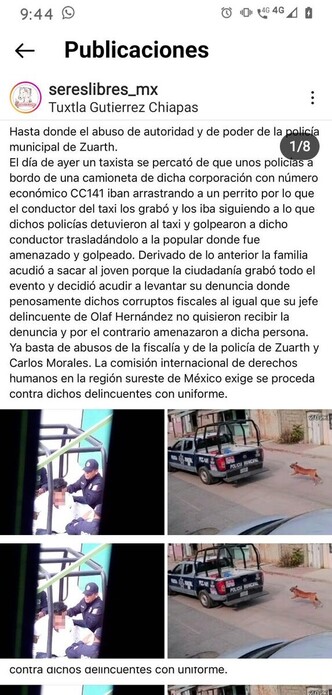 Policías en #tuxtlagutierrez @ChiapasGobierno asesinaron arrastrando a un perrito cruelmente. porfavor hagamos ruido ,estos malditos merecen ser ajusticiados 😐😡