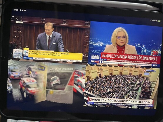 #mediawatch #tvn24 pokazuje debatę sejmową, w #tvpinfo propaganda, #polsatnews (bezpiecznie) reklamy, #wydarzenia24 typowe dla formatu powtórkowe serwisy informacyjne
