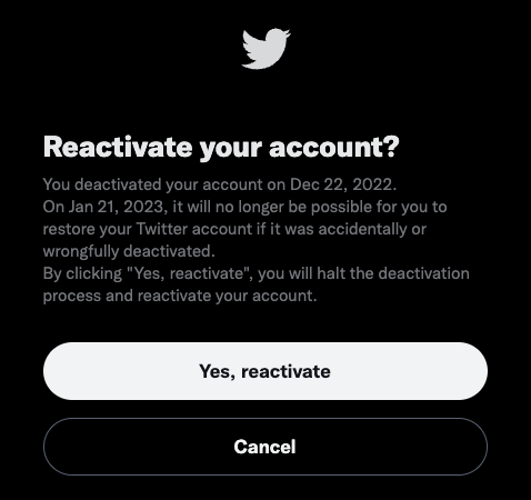 #Twitteraccount mit allen alten und archivierten #Tweets und Likes deaktiviert. Die vollständige Löschung erfolgt automatisch nach 30 Tagen, falls der blaue Vogel 🐦 nicht bereits vorher in Flammen aufgeht :birdsite:.