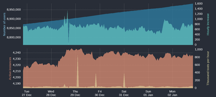 Morgen werden wir voraussichtlich die Marke von 9 Millionen #Mastodon-Usern knacken! 💪🏻