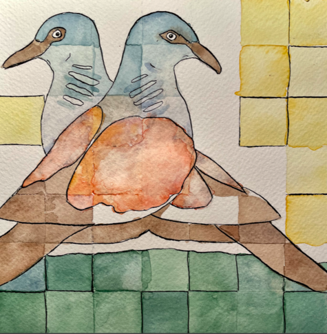 #fediart #MastoArt #inksketch #watercoloursketch #watercolour #twoturtledoves #ArtAdventCalendar