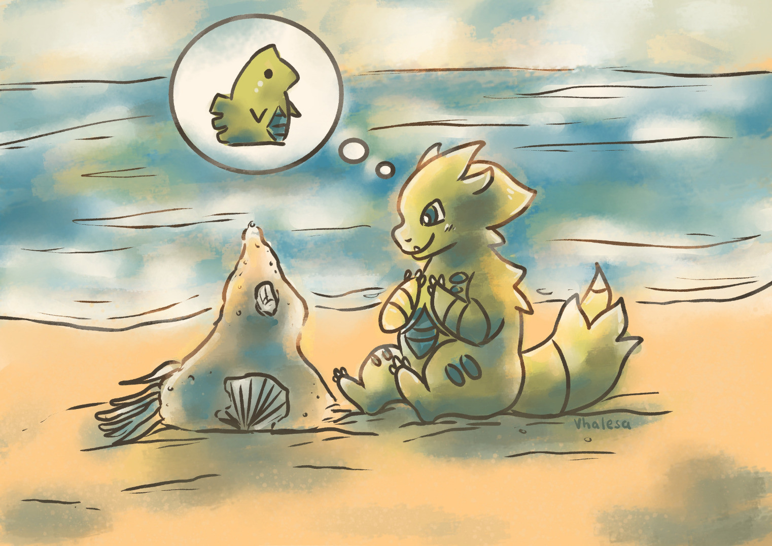 #CreativeToots #DigitalArt #sand #beach #larvitar #tyranitar #krita #pokemon #art #MastoArt