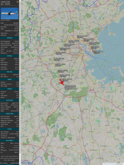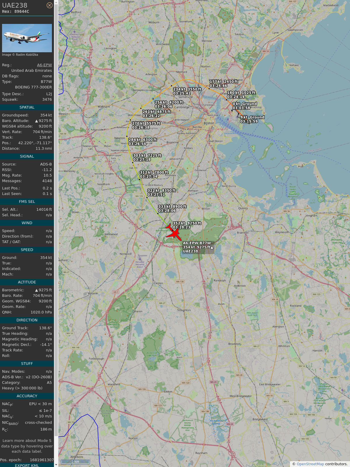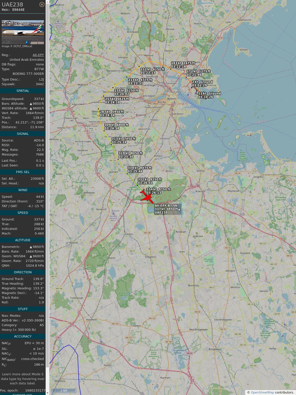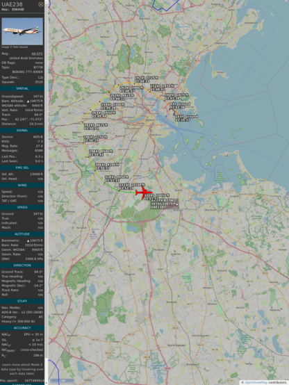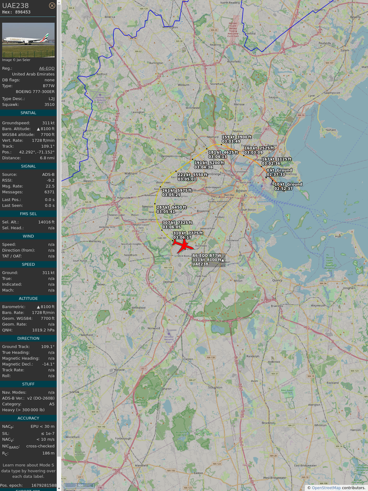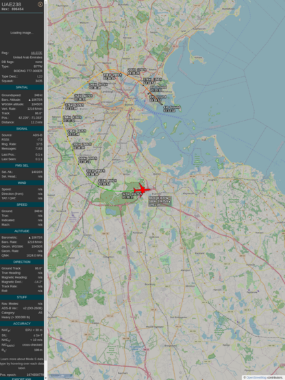 #89649f #uae238 #emiratesairlines #bos #dxb #planefence #adsb