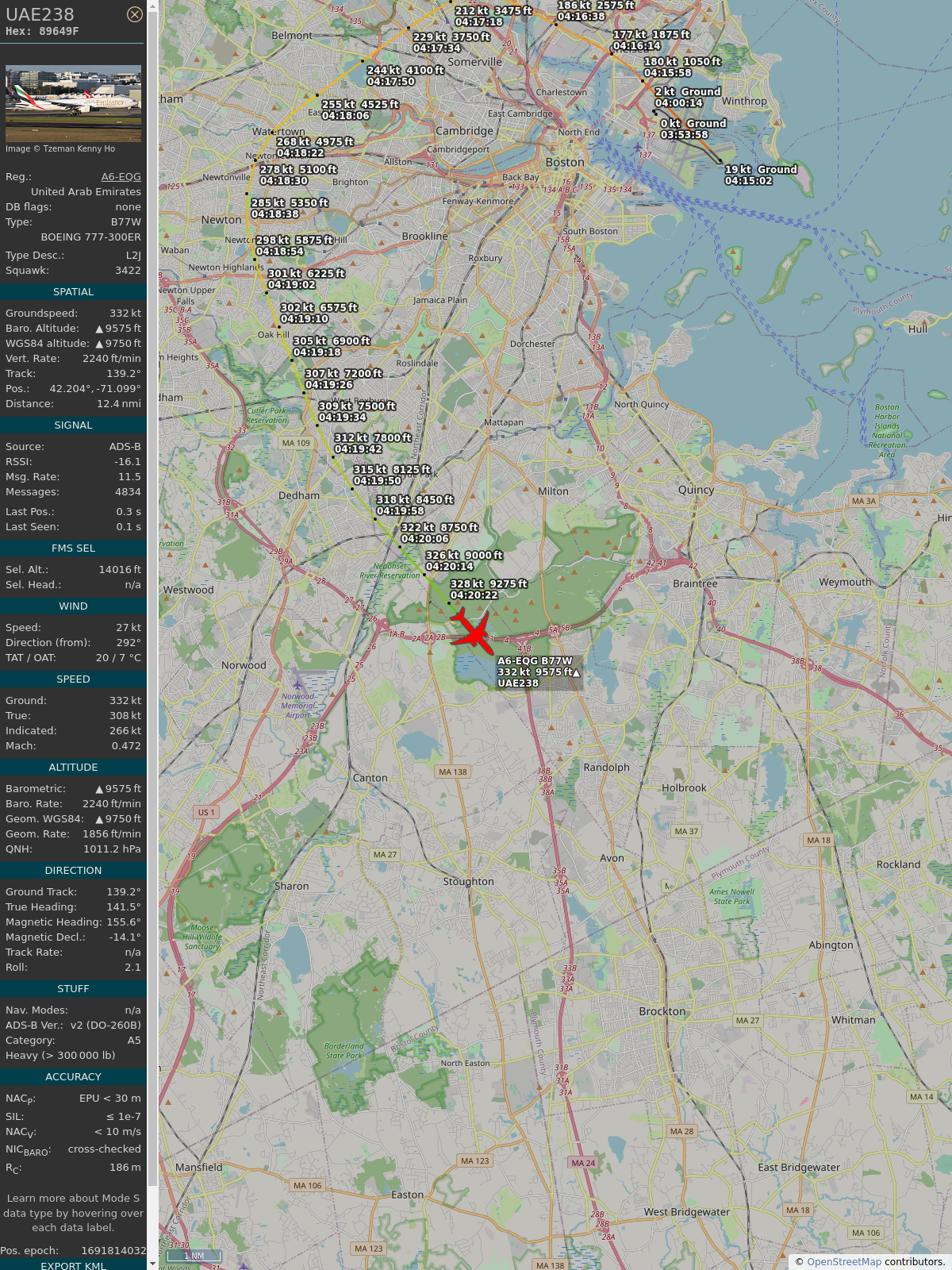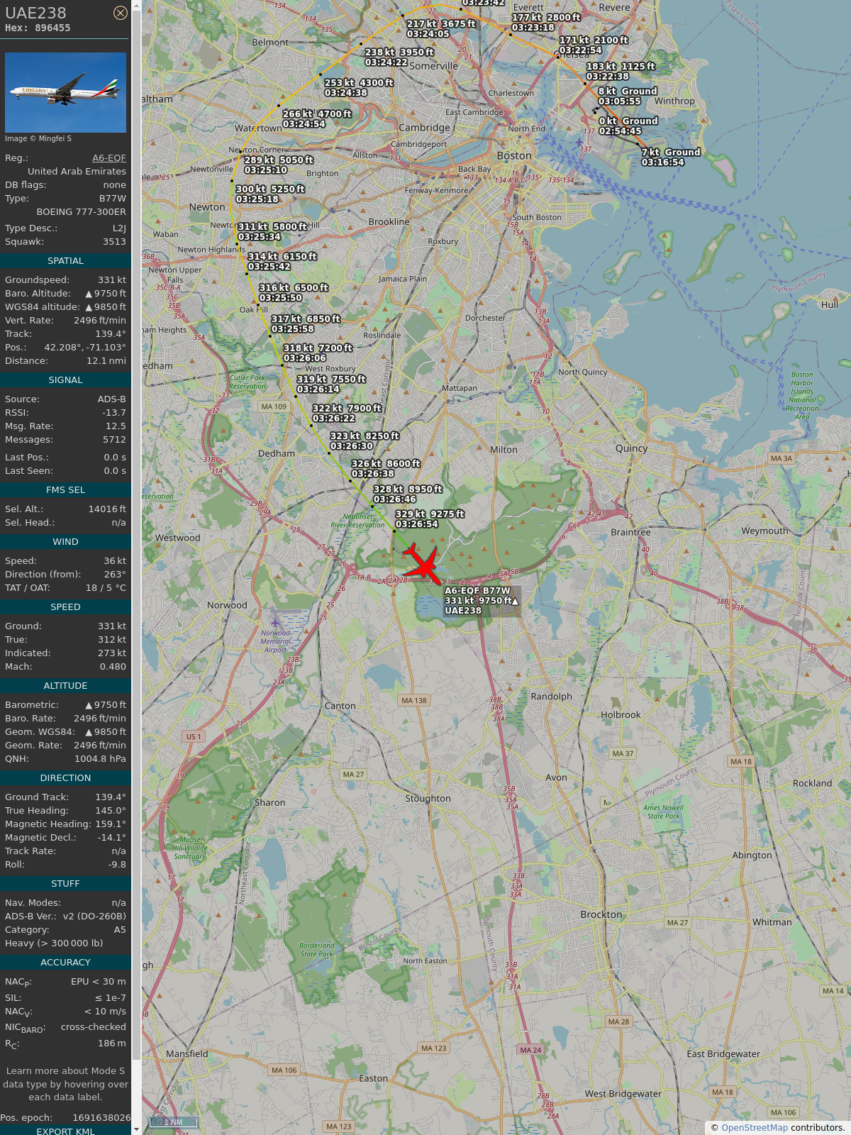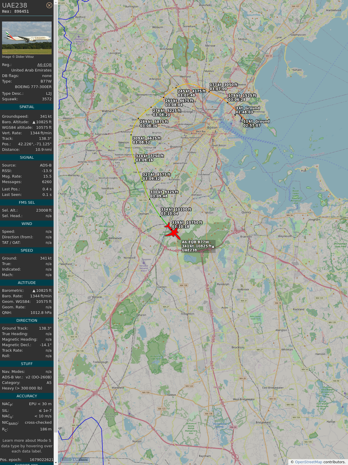 #89649f #uae238 #emiratesairlines #bos #dxb #planefence #adsb