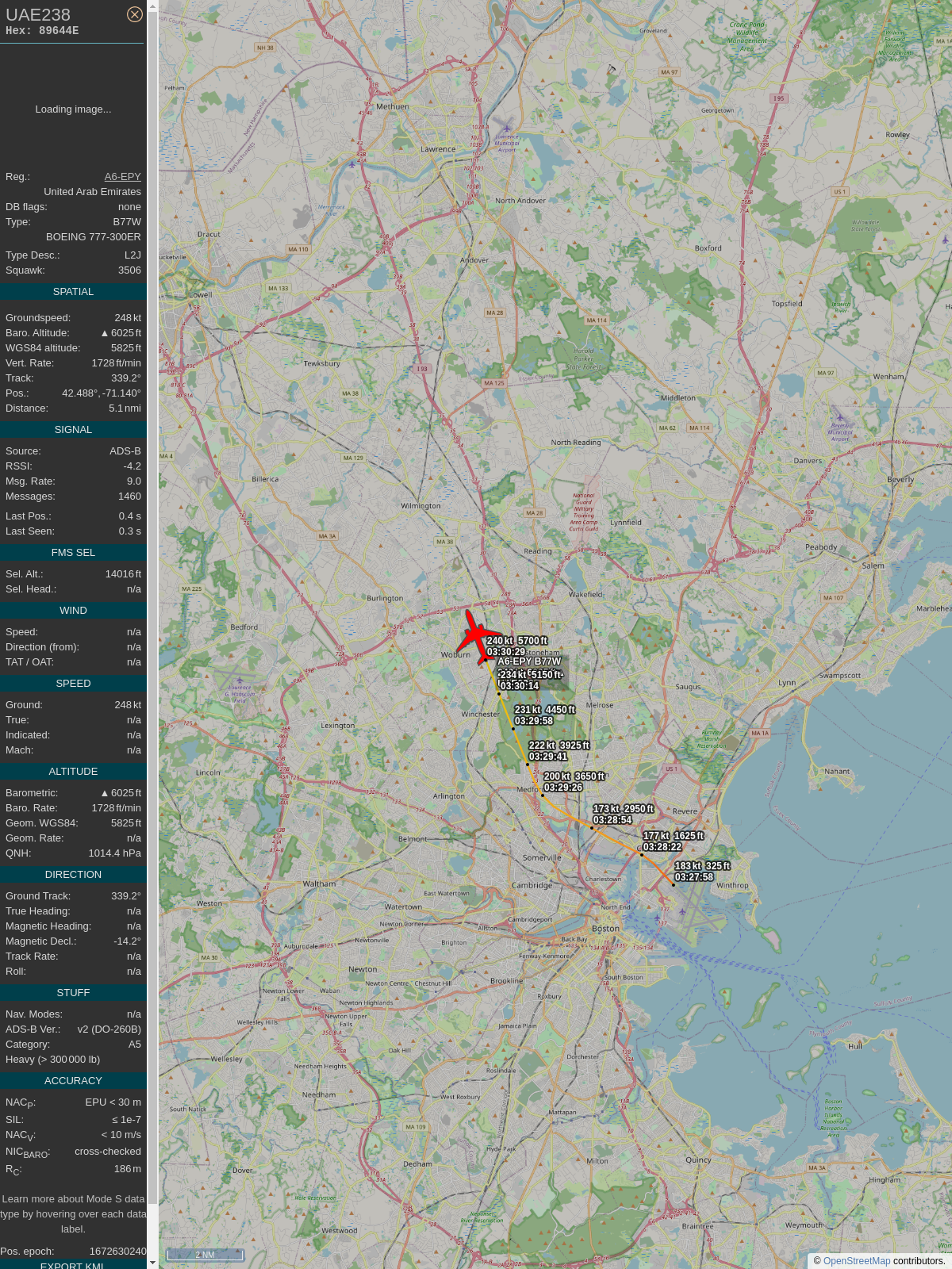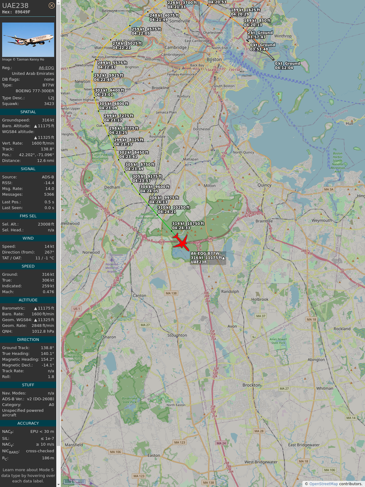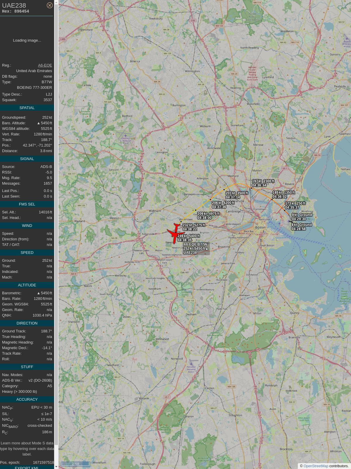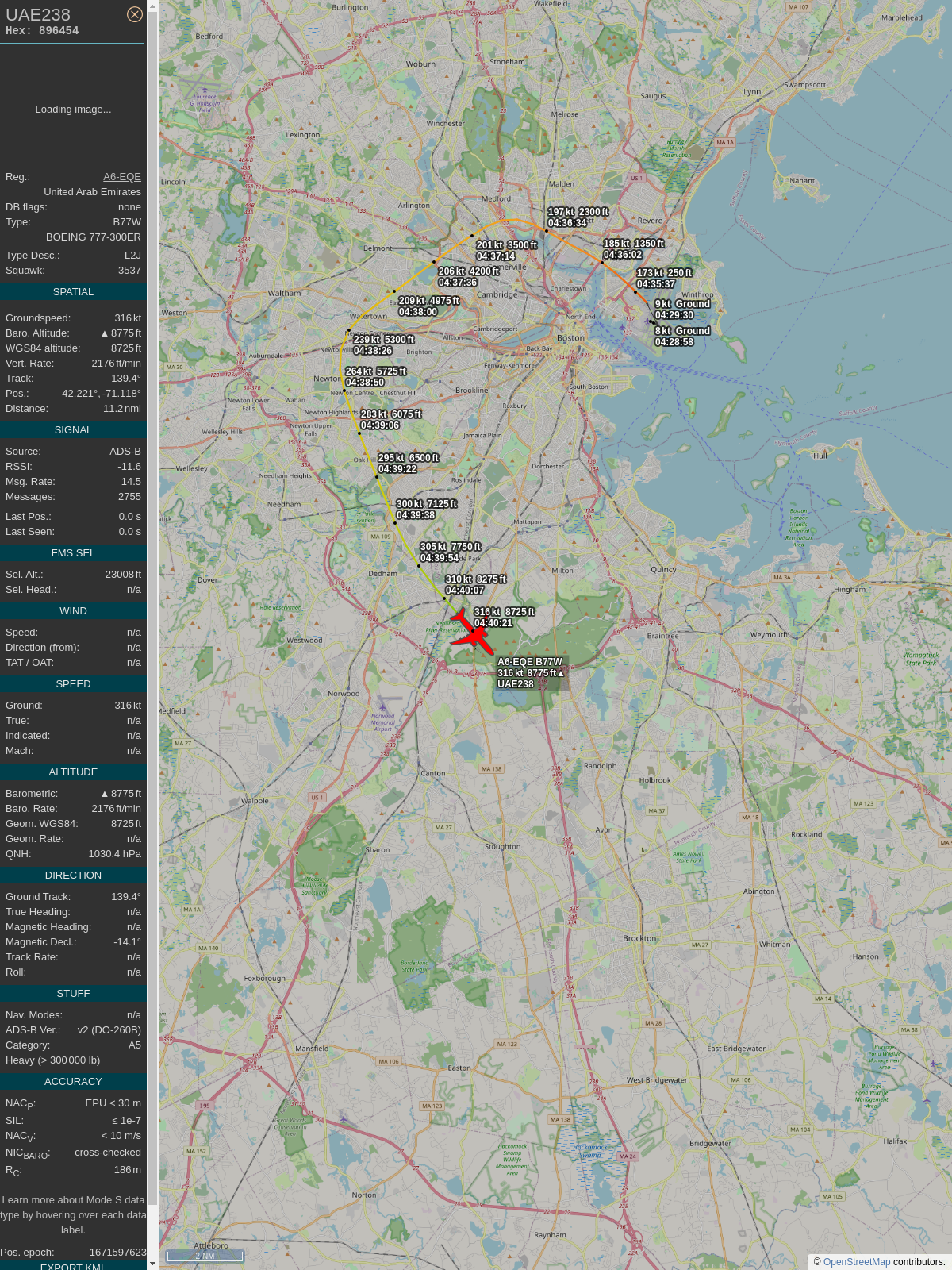 #89649f #uae238 #emiratesairlines #bos #dxb #planefence #adsb