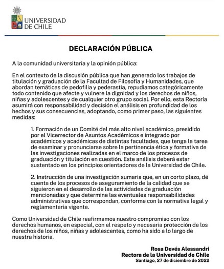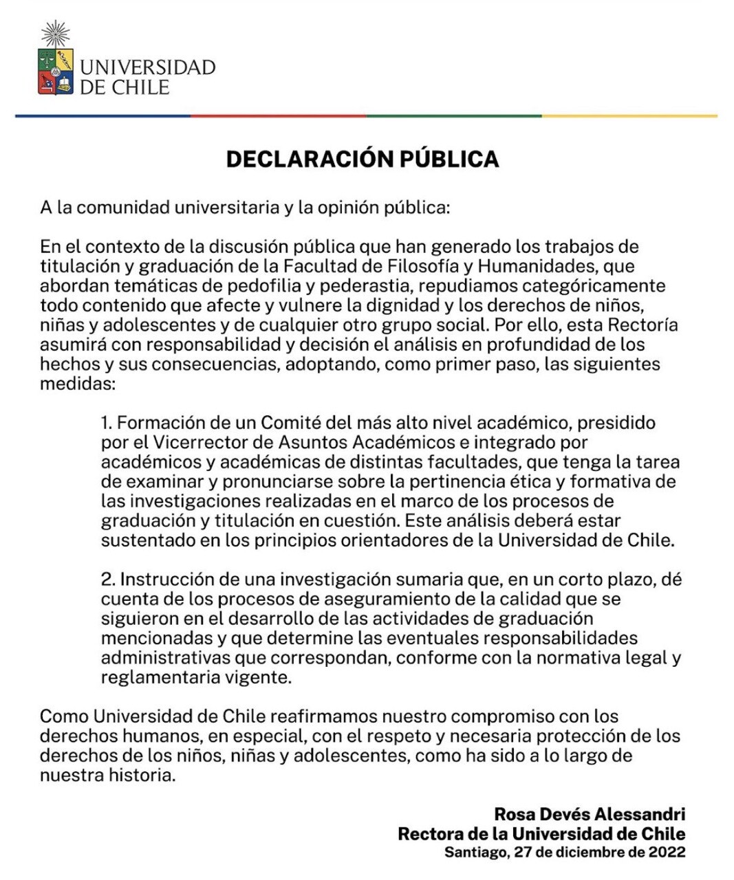 Espeluznante… ¿cómo es posible que se permita publicar tesis sobre pedofilia en la Universidad de Chile?