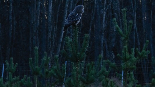 Ugglan satt ganska nÀra, men jag har aldrig försökt spela in ljud innan sÄ jag filmade nattmörkret och redigerade videon (bytte ut den till stillbilder pÄ ugglor). Inte det bÀsta alternativet kanske, men jag kom inte pÄ nÄgot bÀttre klockan 3 pÄ morgonen.