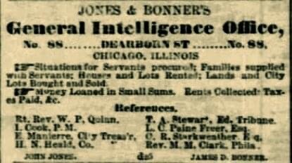 In December 1853, #UGRR leaders JohnJones and #JamesDBonner began advertising their new #Chicago business venture, the General Intelligence Office