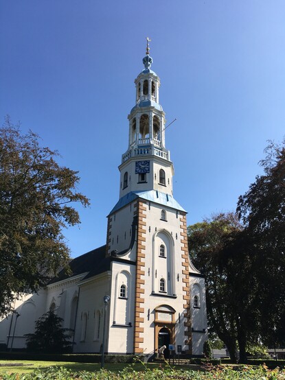 Je rijdt tegen zonsondergang richting Uithuizermeeden. De zon verlicht nog een gedeelte van het dorp, waarbij de Mariakerk eruit springt. De duisternis zal zo invallen...