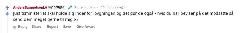 #lol. Anders Samuelsen er ikke blevet briefet af #lurerSøren, så på reddit lyver han om #ulovligLogning. Det ér ulovligt, og det har ministeriet indrømmet. De mener dog at ministerier må handle ulovligt i en periode på op til 12 måneder fra en dom. Der er nu gået 25 måneder.