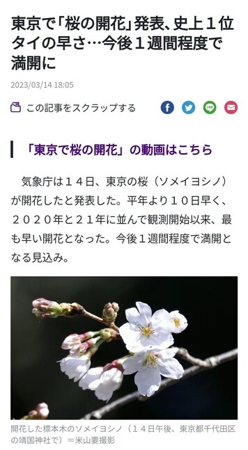 Come i primi petali facevano presagire, la fioritura dei Sakura, annunciata definitivamente ieri, è in anticipo di 10 giorni sulla media degli ultimi 70 anni.