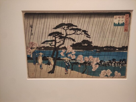 La mostra di ieri al museo era sui Sakura, con una stampa del fiume Sumida con ciliegi fioriti e pioggia, proprio come era 5 giorni fa. Tutto diverso, tutto uguale.